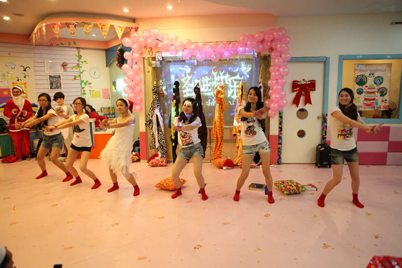 踩著樂(lè)點(diǎn),跳著歡快的舞蹈,你們現(xiàn)在看到的是:平時(shí)看不到的老師哦。為了你們的圣誕快樂(lè),她們辛苦了。