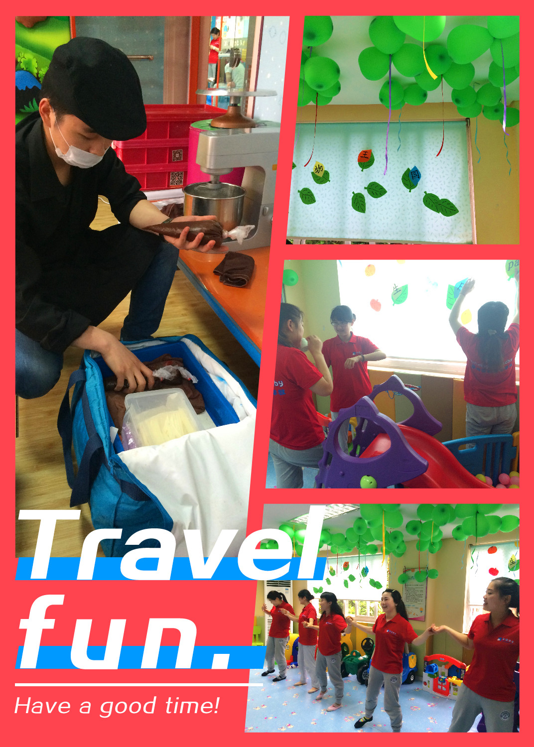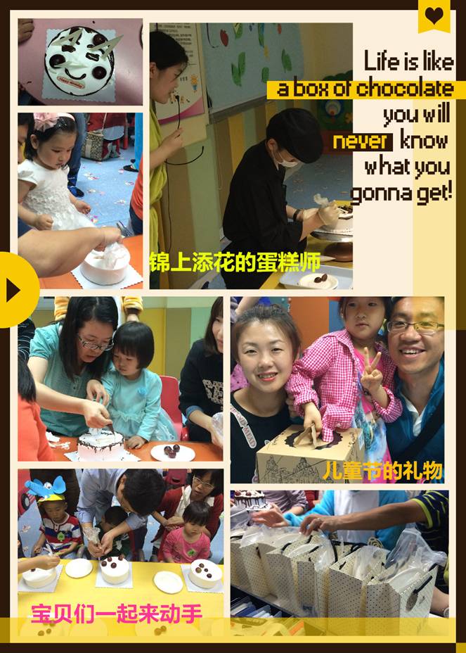 快看!準(zhǔn)備活動(dòng)從下午就井然有序的進(jìn)行著。老師們?cè)诿χ贾矛F(xiàn)場(chǎng)環(huán)境,看到房頂?shù)膼?ài)心氣球了嗎,都是一個(gè)一個(gè)吹出來(lái)扎上彩帶,是不是把節(jié)日氣氛點(diǎn)綴地更喜慶了?Party當(dāng)然少不了蛋糕啦,活動(dòng)當(dāng)天特別邀請(qǐng)了專(zhuān)業(yè)的蛋糕師,還是小鮮肉哥哥一枚呢,謝謝小師傅的高超手藝為我們準(zhǔn)備了美觀可口的巧克力蛋糕!