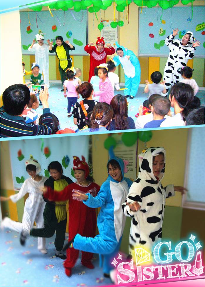 莘莊園的老師們扮演成各種小動(dòng)物來(lái)歡迎參加Party的小朋友們: