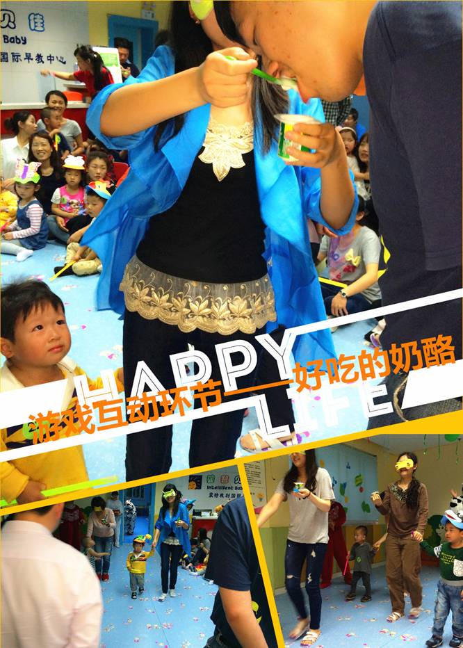 寶寶快看,爸爸媽媽在干嘛?原來(lái)這個(gè)是專(zhuān)門(mén)穿插的互動(dòng)游戲環(huán)節(jié)----好吃的奶酪!先來(lái)聽(tīng)一下游戲規(guī)則:由寶寶帶著蒙著眼睛的媽媽帶到爸爸跟前,然后蒙著眼睛的媽媽用勺子喂爸爸吃奶酪,哪個(gè)隊(duì)先吃完的勝出。下面讓爸爸媽媽一起來(lái)大顯身手吧!