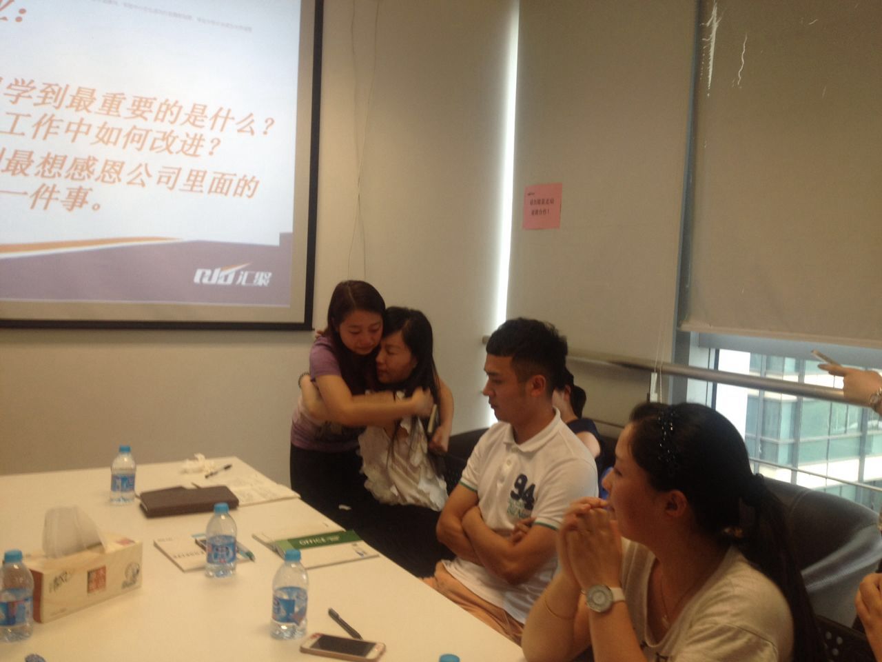 下圖為軒軒老師發(fā)言結(jié)束后,擁抱感激像自己媽媽一樣栽培自己的鄭老師: