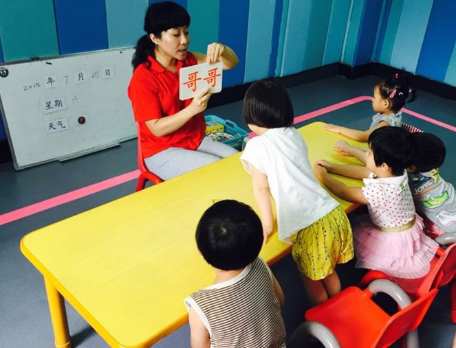 嬰智貝佳專業(yè)老師在利用閃卡訓(xùn)練寶貝們的記憶力:
