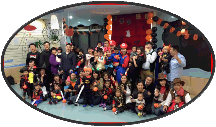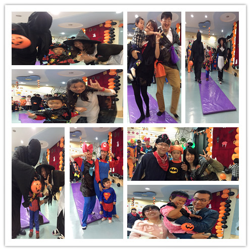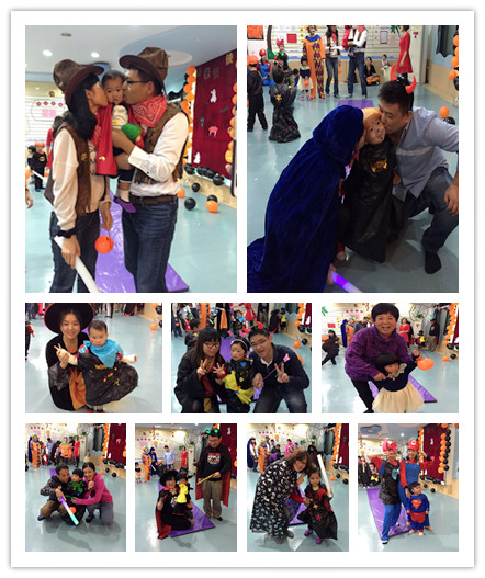 在萬(wàn)圣節(jié)來(lái)臨前,嬰智貝佳七寶園勤勞的老師們自制多種材料精心布置教室,給小朋友們營(yíng)造一個(gè)特別的萬(wàn)圣節(jié)氣氛,特有的裝飾把我們的教室裝飾得更加可愛(ài)。晚上六點(diǎn)鐘一到,孩子、家長(zhǎng)們都一番精心打扮到中心來(lái)。我們老師也特意為寶寶們準(zhǔn)備了萬(wàn)圣節(jié)的服飾和設(shè)計(jì)妝容。有的孩子打扮成小惡魔的模樣,有的孩子打扮成白雪公主,有的孩子“變身”超人,還有的孩子“變身”海盜……