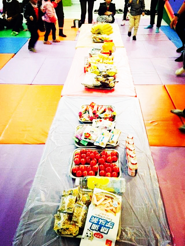 好玩的游戲結(jié)束了,小肚子有點(diǎn)餓了,哇!小桌子上面有好多的小零食啊!