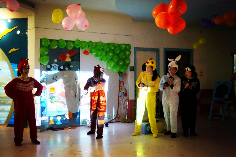 感恩節(jié)當(dāng)天,全園師生一起營(yíng)造“愛(ài)”的氛圍,開展“愛(ài)”的教育!首先有我們的老師們?yōu)槲覀儙?lái)精彩的開場(chǎng)舞,引導(dǎo)孩子了解感恩節(jié)的由來(lái),引發(fā)孩子主動(dòng)關(guān)注周圍人對(duì)自己成長(zhǎng)付出的一切,用好聽的話說(shuō)一句感恩的話、用舞臺(tái)劇《小熊請(qǐng)客》引導(dǎo)幼兒理解其意義,懂得感謝、關(guān)愛(ài)他人,并且請(qǐng)孩子對(duì)父母說(shuō)一句感恩的話。讓孩子了解父母養(yǎng)育孩子的艱辛,了解父母之愛(ài)的無(wú)私,表達(dá)自己的感恩之心。并和著歌曲“感恩的心”, 認(rèn)真、專注地用手語(yǔ)表達(dá)著自己的感恩兒之間、師幼之間、同事之間交流著,感動(dòng)著! 活動(dòng)高潮涌起。寶貝和家長(zhǎng)們的熱情,我們始料未及。那一條條隨風(fēng)飄動(dòng)的紅藍(lán)絲帶,那一次次流淌在心靈里的《感恩的心》,仿佛讓我們的心靈也接受了一次洗禮。寶貝和家長(zhǎng)們聆聽了那感人至深的真情告白,許多在場(chǎng)的老師和家長(zhǎng)們不由地發(fā)出了“情到深處淚自流”的感嘆。活動(dòng)的最后寶貝們互換了禮物也為這次活動(dòng)劃上了圓滿的句號(hào)。
