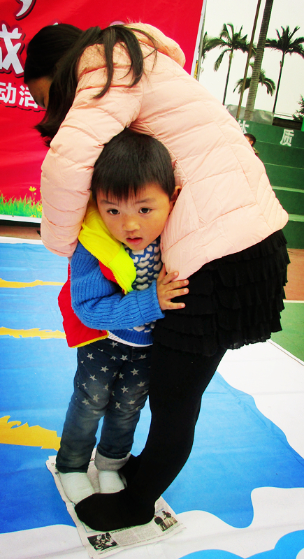 要求:隨著報(bào)紙的不斷折疊,家長和寶貝的小腳不能脫離報(bào)紙而著地