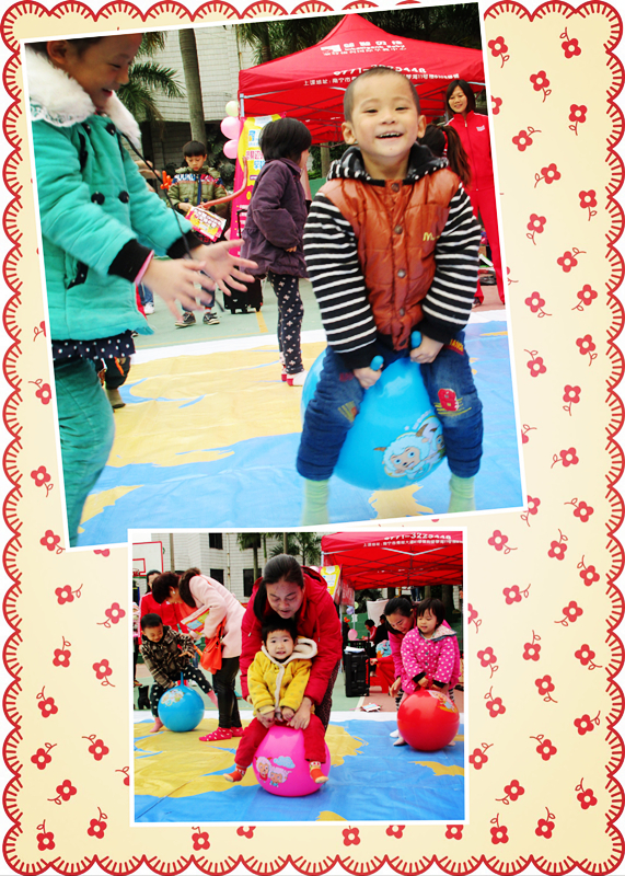 要求:家長協(xié)助寶貝,將羊角球從起點(diǎn)騎到終點(diǎn)