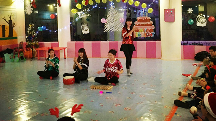 今晚我們不僅要歡度圣誕,還要慶祝我們親愛的寶寶們的生日!看,我們多才多藝的老師們已經(jīng)開始為寶寶們演奏器生日歌了。