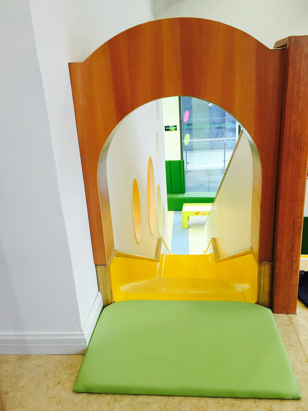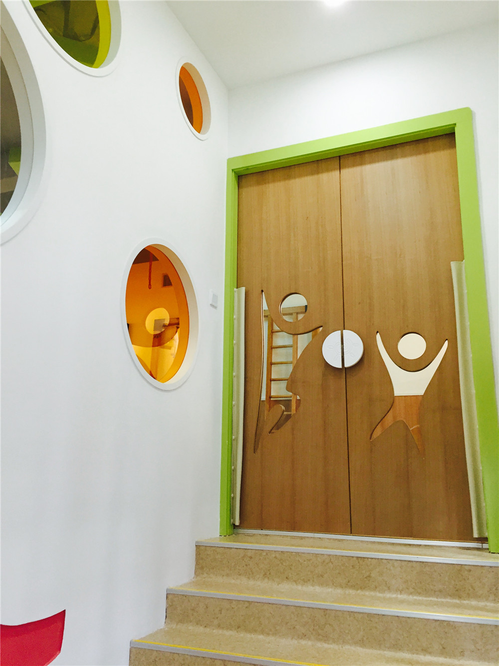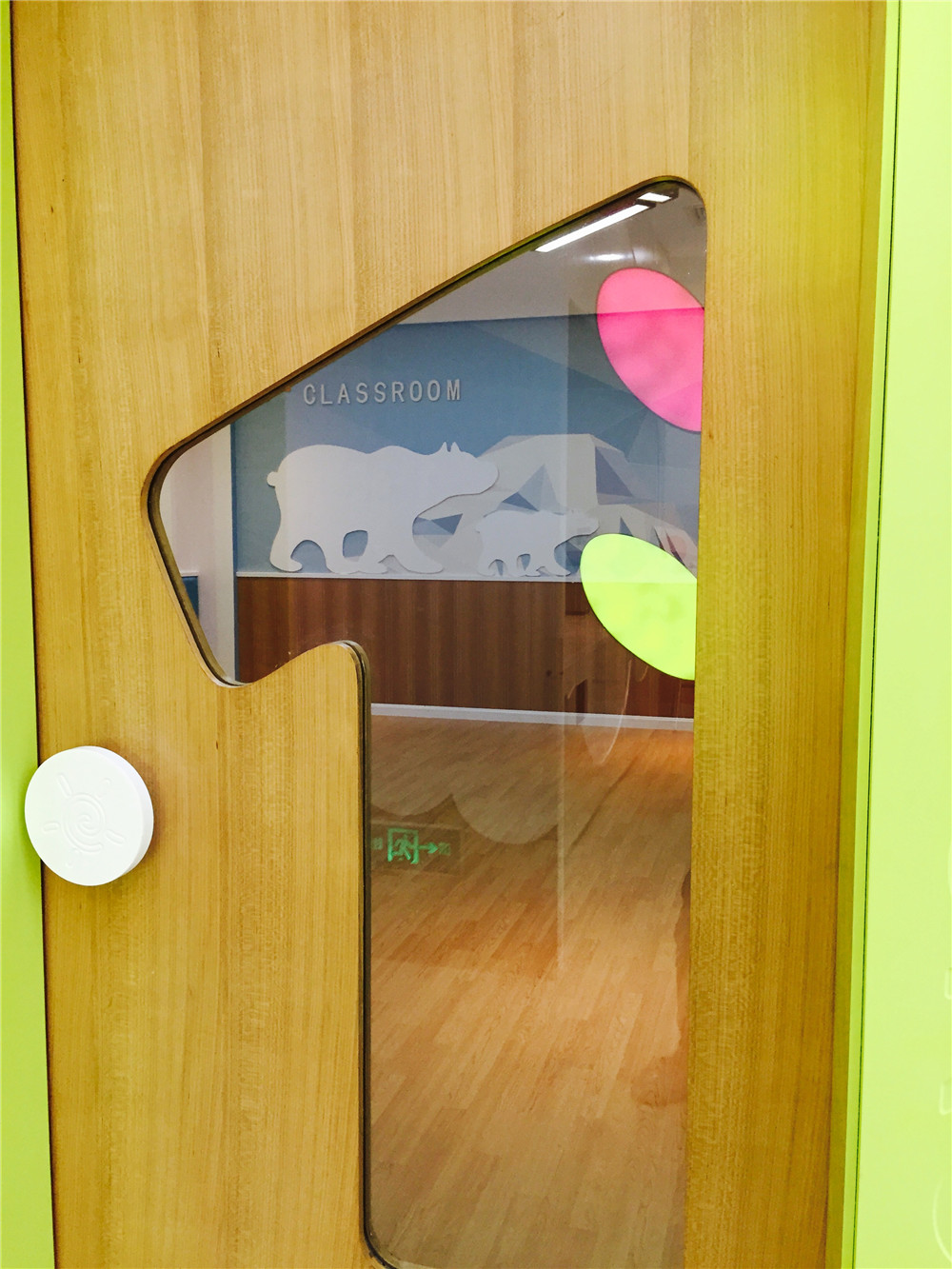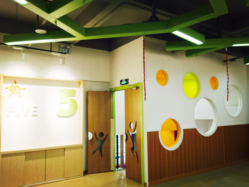 刷卡打開安全門禁,步入色彩絢麗但又顯可愛的大廳