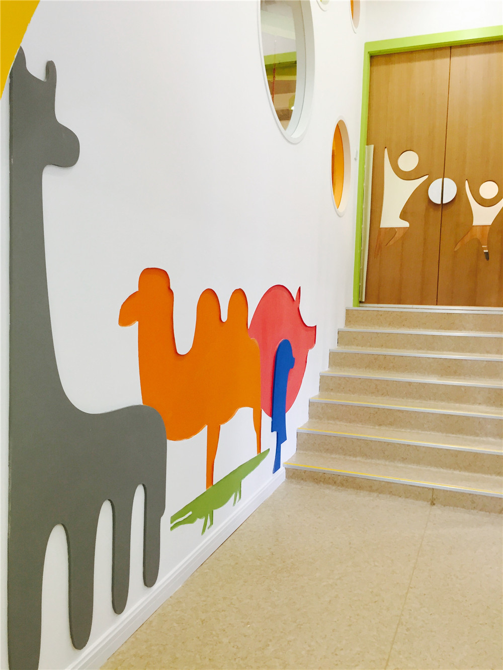 登上二樓映入眼簾的是可愛的動物墻,悄悄的告訴你,長頸鹿長長的脖子可是刻度尺,可以丈量寶寶的身高呢,“小兒自有凌云志,誓與長鹿相比高”說你的就是你的寶寶呢