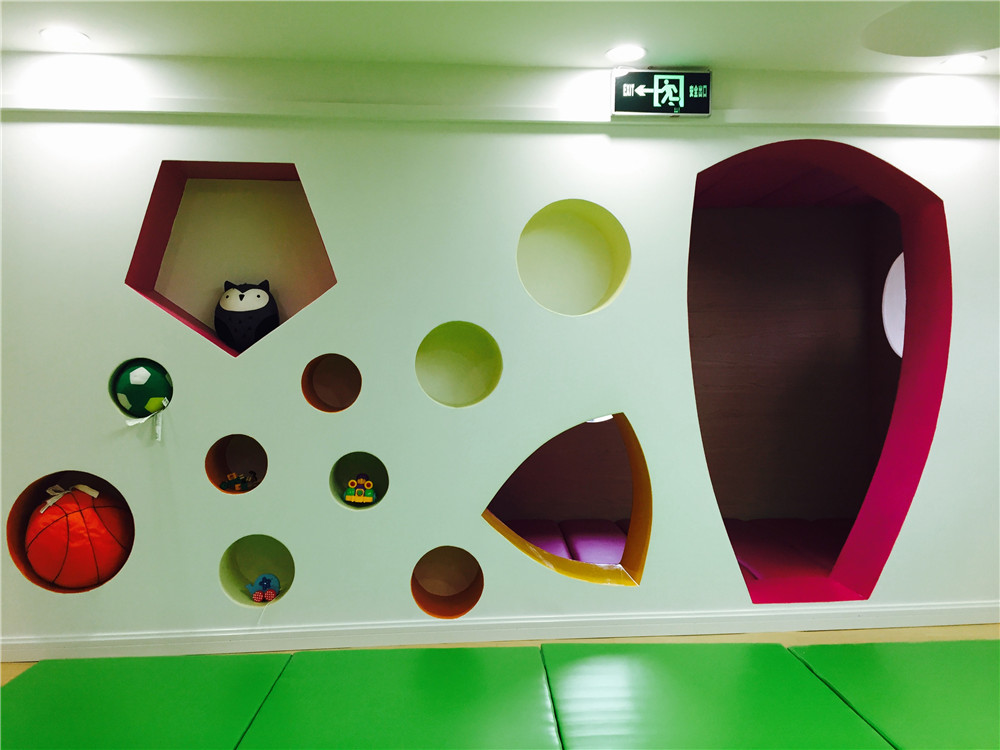 動物墻的左側(cè)就是小寶寶的最愛:爬爬間了。專門給小寶寶游戲玩耍的爬爬間,小寶寶和大寶寶之間怕碰到,所以專門設(shè)置了這個爬爬間,在國外很多注重寶寶的安全和隱秘,對于小寶寶而言,這個空間就比較安全,給人一種安全隱秘的感覺。選用的軟裝也都是經(jīng)過國家安全無毒的環(huán)保認(rèn)證,運動區(qū)加厚的地毯在保護(hù)孩子在運動中不受傷害,讓孩子們在安全又有趣的環(huán)境中安心地成長。