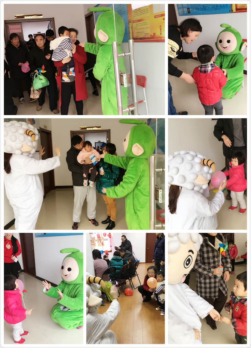 咦 瞧?什么在等著我們?老遠(yuǎn)處就看見(jiàn)了喜洋洋和天線寶寶在門口的等候。老師們帶著大家一起跳開(kāi)場(chǎng)舞《大家一起喜洋洋》。熱鬧的音樂(lè),帶著大家進(jìn)入過(guò)年的氣氛。