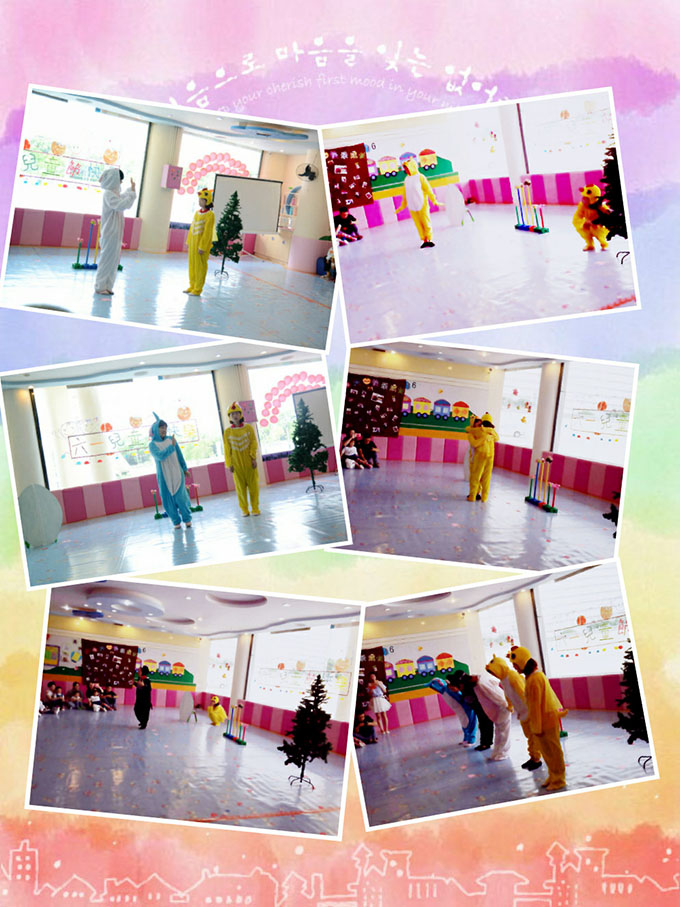 “呱呱呱、呱呱呱,我是一只快樂的小青蛙!春天到啦,我要出去活動活動啦,寶貝們,你們快快長大哦!”“爸爸,爸爸,我的爸爸在哪里,你見過我的爸爸嗎?”一個膾炙人口的故事,在李圣量寶寶和爸爸的精彩反串演繹下,變的更加出色生動!而我們的量量寶貝,一人分飾多角,扮演了青蛙爸爸、鴨子爸爸、鯉魚爸爸、烏龜爸爸、白鵝爸爸,獲得了家長和老師們的熱烈掌聲!