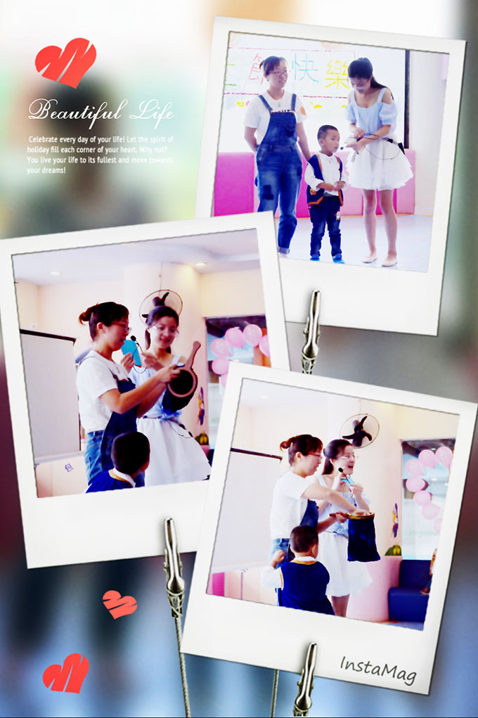 “大家好,我就是玉樹臨風(fēng),風(fēng)流倜儻,人見人愛,花見花開,一朵梨花壓海棠的盛思誠大小伙子,帥哥!”哈哈哈哈哈……臺下爆發(fā)出了熱烈的掌聲。原來是我們的盛思誠大小伙子帶著媽媽變身魔術(shù)師,給寶貝們變禮物啦!小朋友們,你們可要睜大你們的大眼睛仔細(xì)看哦,禮物在哪里呢?