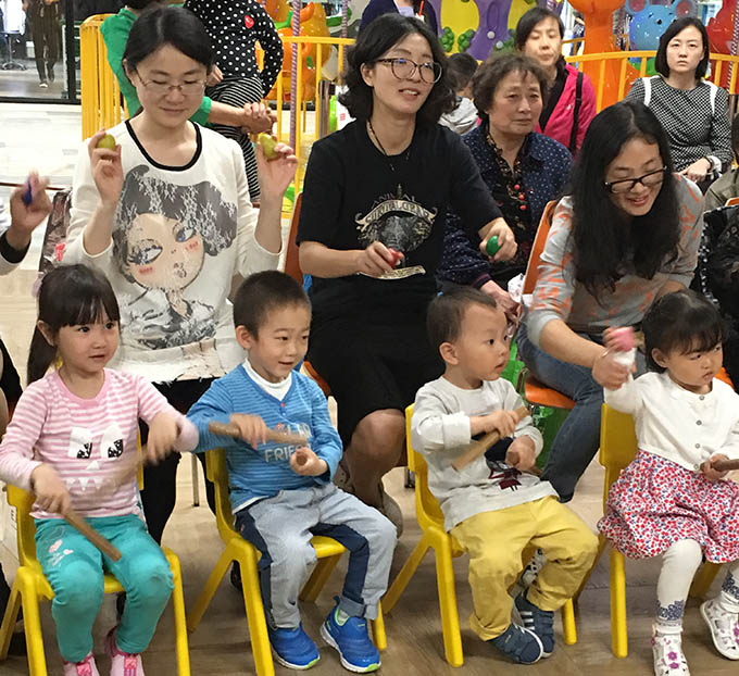 緊接著是我們的利利老師帶來的律動(dòng)拍手點(diǎn)頭和小小音樂家,寶貝們很活躍比平時(shí)表演的更積極呢!