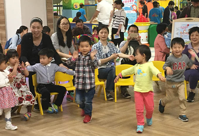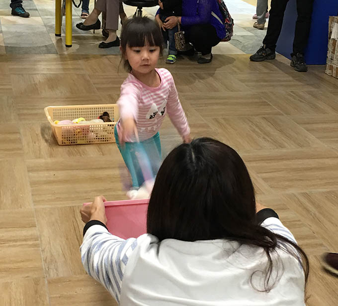 演奏時(shí)間結(jié)束了,到了我們精彩的競技游戲環(huán)節(jié)了,猜猜我們今天會(huì)玩什么好玩的游戲呢?第一個(gè)游戲是投擲小玩偶,看我們寶寶和媽媽分工合作,一個(gè)拋一個(gè)接,配合默契哦!