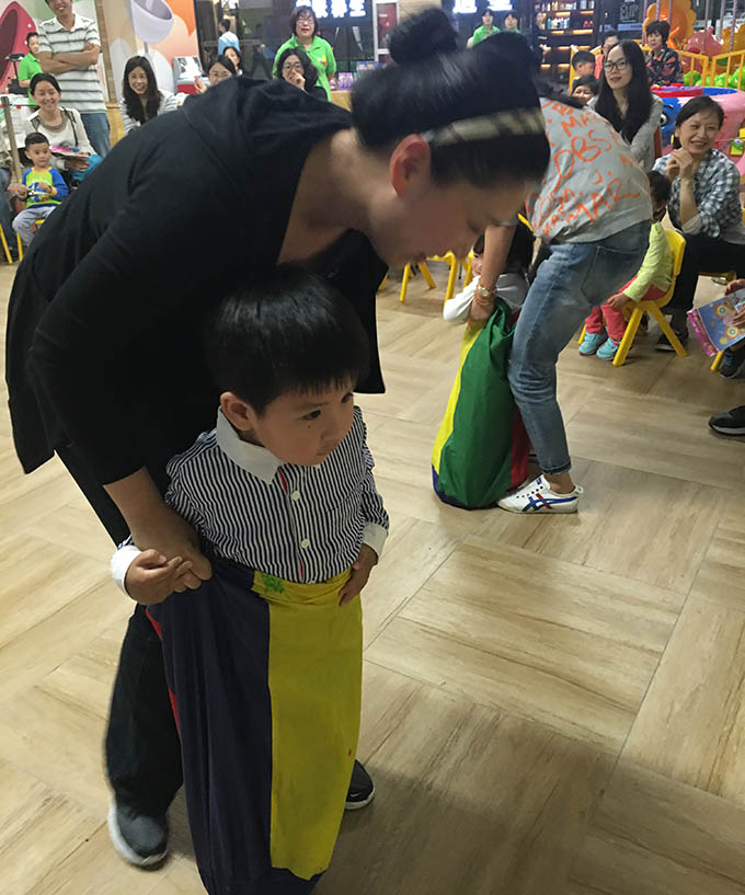 第二個(gè)游戲是袋鼠跳,我們家長帶著寶寶像袋鼠一樣跳到對(duì)面的終點(diǎn),粑粑麻麻你追我趕競爭很激烈?。?