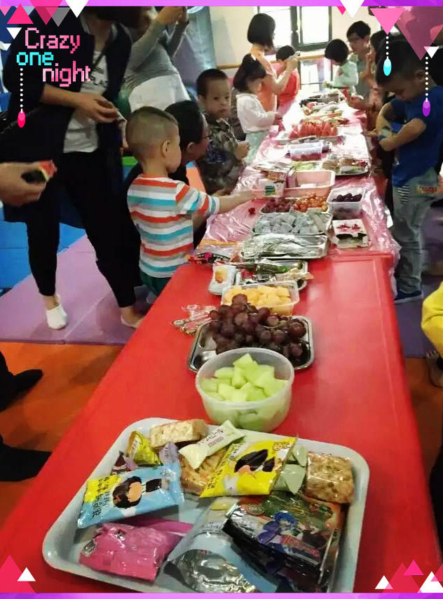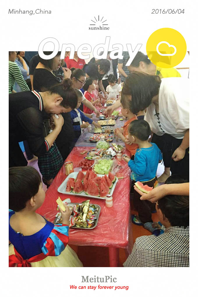 最后一環(huán)節(jié)是寶貝們的食物分享拍照留念。色彩繽紛的水果和美味佳肴的點(diǎn)心令寶寶們開心無比!