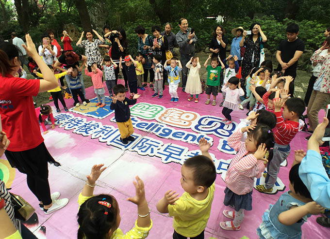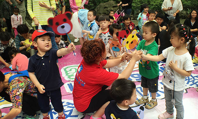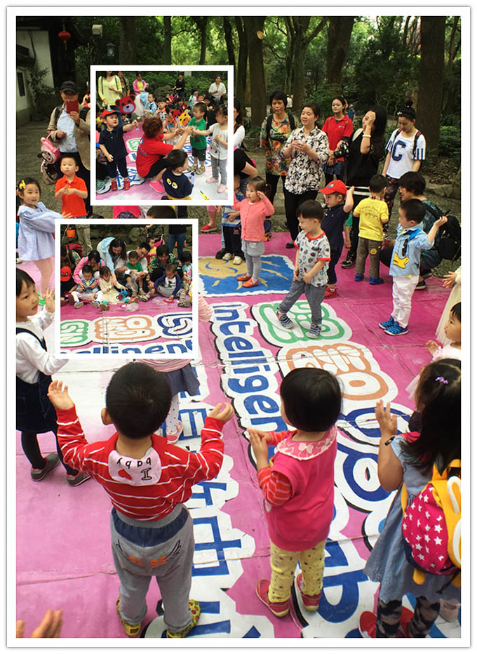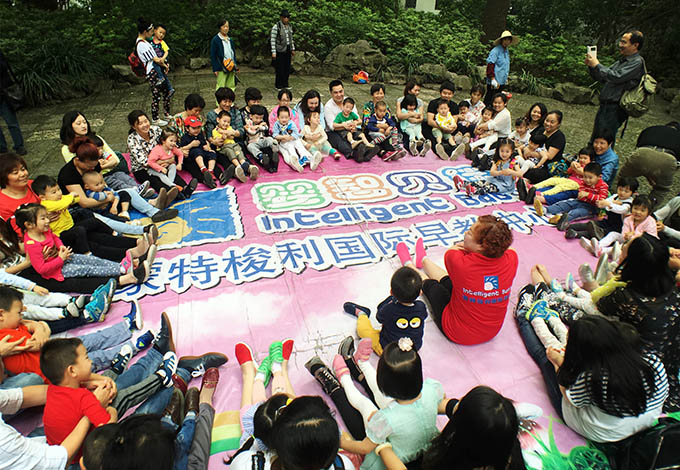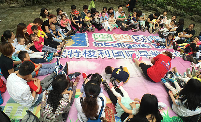 6月的清晨,還帶著點點的悶熱,嬰智貝佳兒童之家七寶園的小朋友們拉著家長早早集合坐上了開往嘉定目的地的養(yǎng)樂多大巴,經(jīng)歷了1個多小時的車上之旅,終于到達了風景秀麗的古漪園。一下車,當嬰智貝佳的大噴繪布一鋪好,寶寶們迅速的圍在了老師的身邊席地而坐,他們的親子游戲時光開始啦。