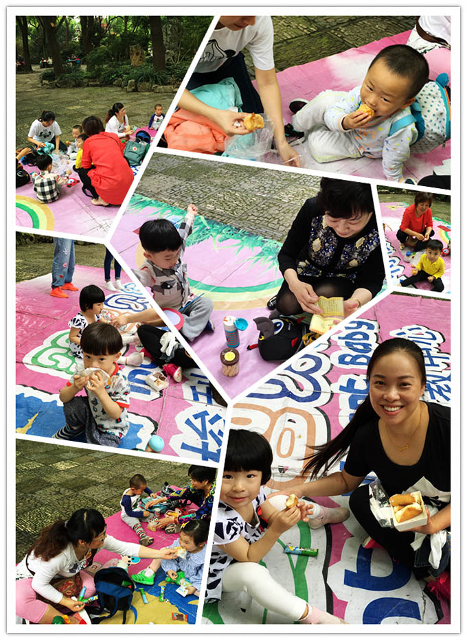 到了午餐時間,寶寶們肚子咕嚕嚕的叫了,紛紛席地而坐來了一場戶外午餐。