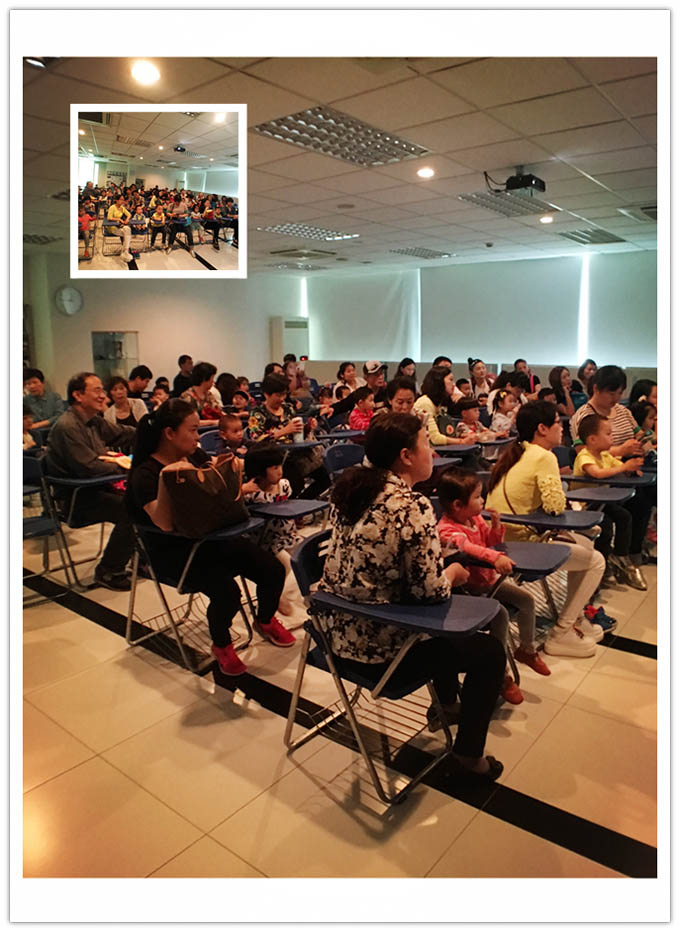 親子party上,老師帶著寶寶們進行了各類游戲,從開始的手指運到,到最后的讓寶寶制作小扇子,作為六一禮物,每一個環(huán)節(jié)都鍛煉著的寶寶的能力,和父母間感情的遞增,以及社交能力的擴展。