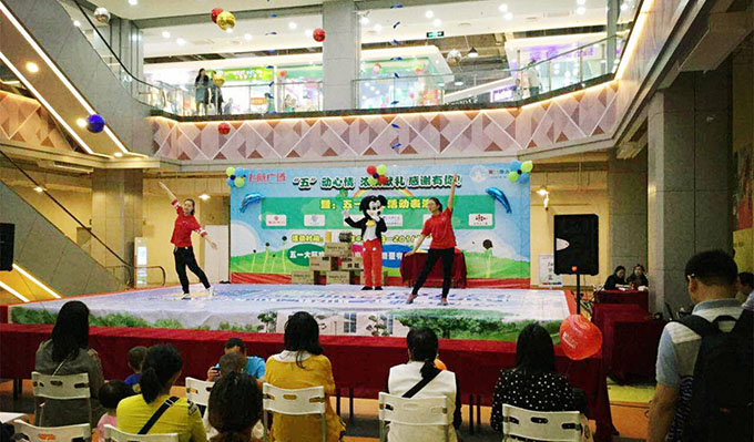 5月1日商場(chǎng)開(kāi)業(yè)慶典中,飛航園主持人的風(fēng)趣幽默,帶著寶寶們玩著有趣的游戲,嗨翻舞臺(tái)!