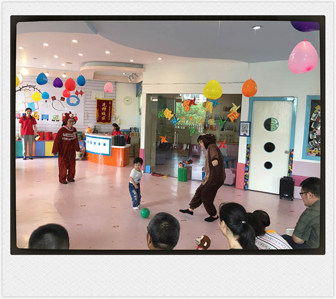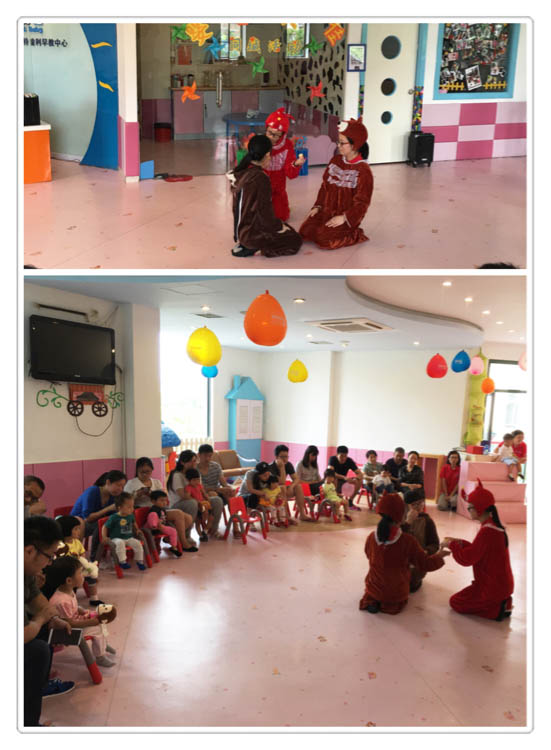 第三個環(huán)節(jié)是小話劇,一群穿著可愛動物服飾的老師們,跟隨著音樂,為在場的寶寶和家長帶來了好看的話劇《兩只笨熊》