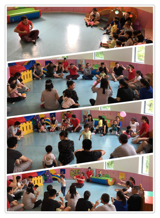 最后的環(huán)節(jié)是由我們嬰智貝佳的資深老師為現(xiàn)場的家庭安排了一場音樂啟蒙體驗課,在場的每一個家庭都很配合很開心
