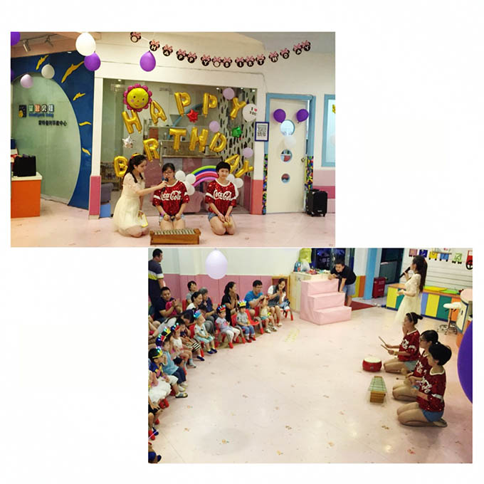 開場(chǎng)舞過后,我們要來唱生日歌啦!看看我們的樂師班為我們帶來了哪些好聽的樂器呢?小耳朵豎起來仔細(xì)聽,有沙錘,鋁片琴和大鼓。小手準(zhǔn)備一起唱:祝你生日快樂,祝你生日快樂,祝你生日快樂!