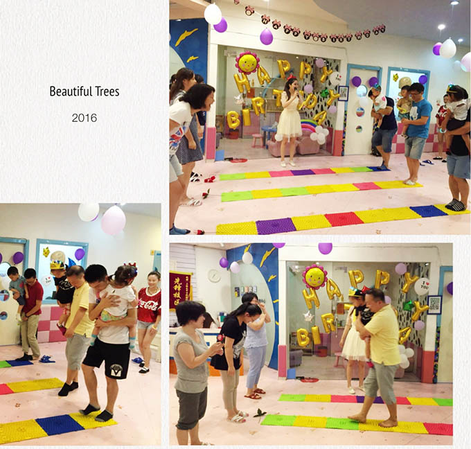 注意注意!到了最精彩的競(jìng)技游戲環(huán)節(jié)了,第一個(gè)游戲是“甜蜜的吻”,看到爸爸們痛苦的表情就知道指壓板來了,脫掉襪子走在對(duì)面的指壓板上讓寶寶撿起花送給媽媽,再送上甜蜜的吻,爸爸感受到我們濃濃的愛意了嗎?