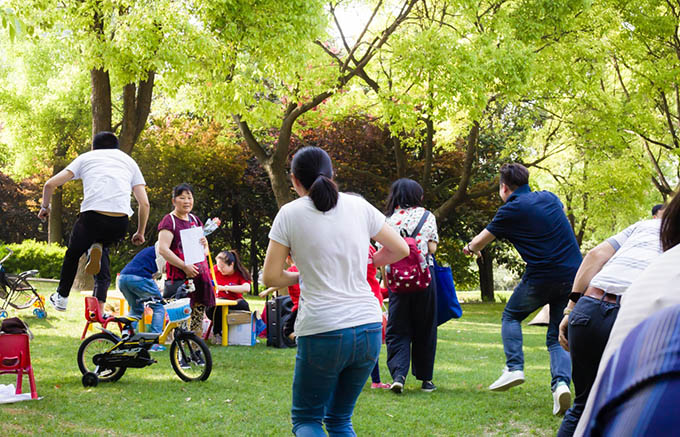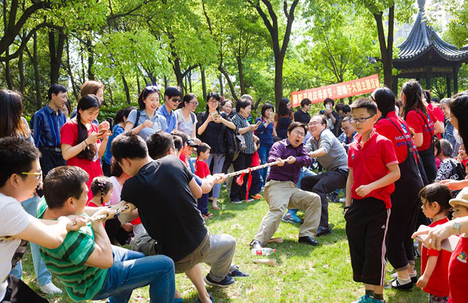 家庭接力賽,賽場上人聲鼎沸.家長臉上滿是興奮