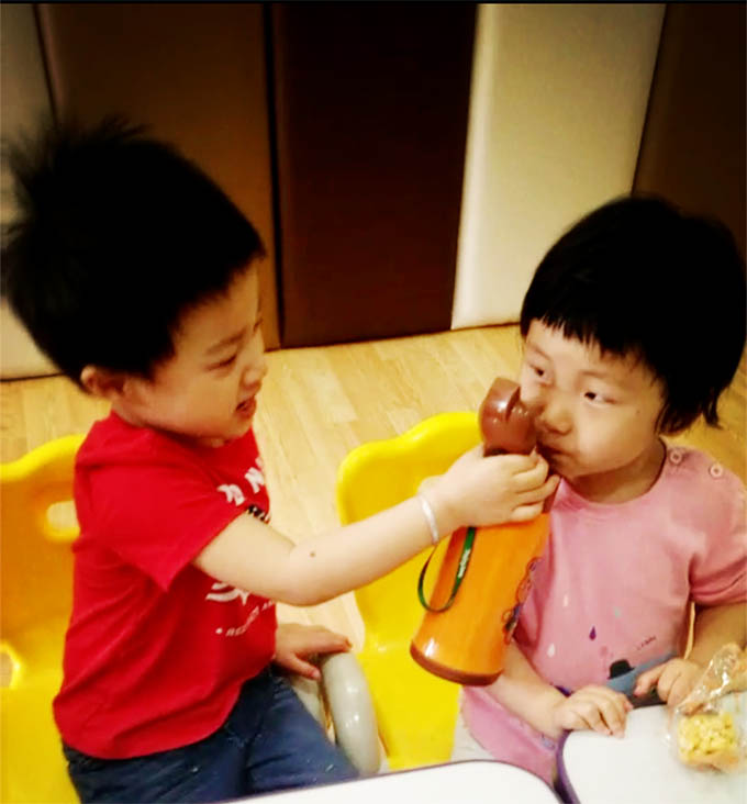 還有愛心的去喂比自己小的小朋友
