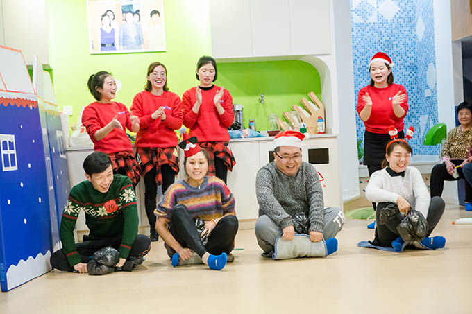 那酷炫的T臺秀之后就到了我們親子游戲的時間了。你們知道圣誕節(jié)圣誕老人是乘坐什么過來給你們送禮物的嗎?沒錯,是雪橇!那接下來我們就讓《雪橇飛起來》吧!