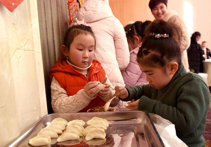 活動當(dāng)晚室外溫度-10,而室內(nèi)卻春意盎然、暖意融融。家長和孩子們一同游戲、歌唱、包餃子、猜燈謎、寫對聯(lián)、寫福、送福......享受著大家庭的溫暖,感受著與家人團聚的幸福與溫暖。