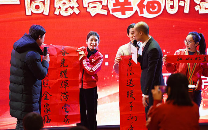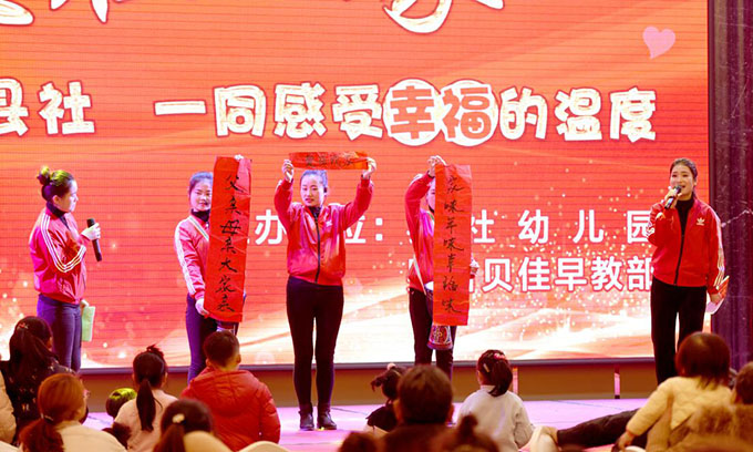 此次,睢寧園“愛在我家”的年會活動,不但讓寶寶們享受了有家人、老師、小伙伴陪伴的幸福,更讓他們感受了中國年的紅火與特色----現(xiàn)場對對子、寫對聯(lián)、寫福、送福富有民族特色的年味,讓整個會場笑聲朗朗、愛意濃濃。