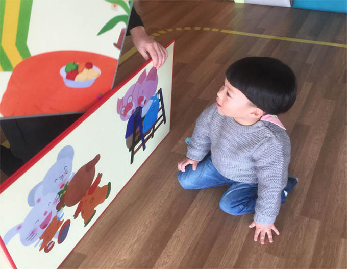 這個(gè)小寶貝用老師的故事版在給他的小伙伴們講故事,他心里的故事又是怎樣的呢?
