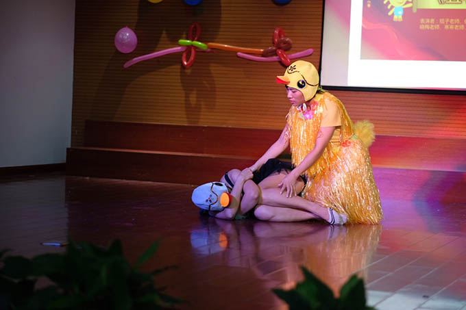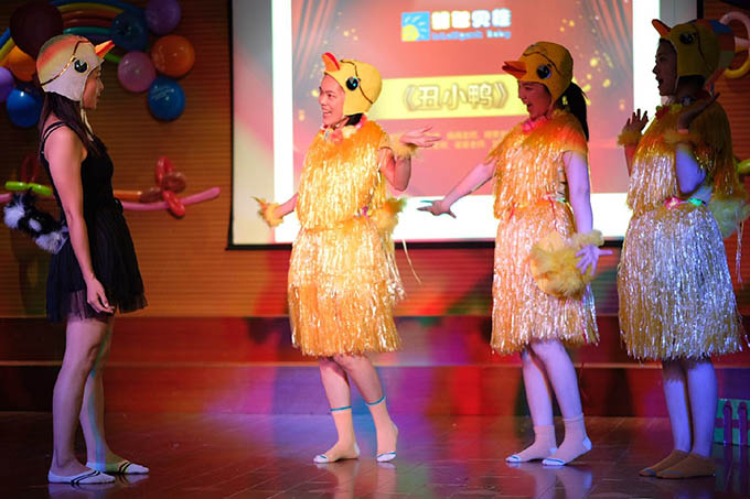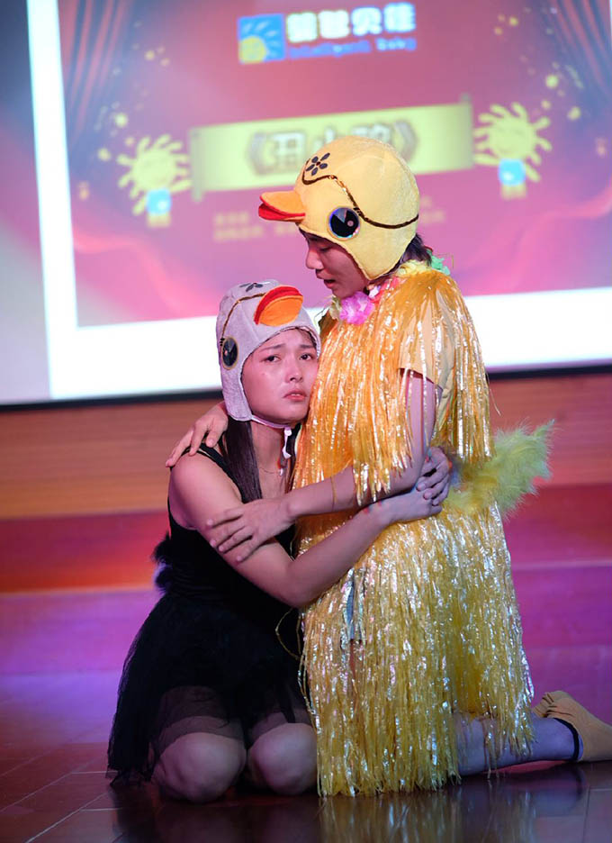 經(jīng)典舞臺(tái)劇《丑小鴨修改版》深入家長(zhǎng)和寶貝的心,可憐的丑小鴨角色看哭很多寶貝和家長(zhǎng),丑小鴨因?yàn)樽约旱牟煌艿狡渌榈某靶推哿瑁诒瘋Ь持谐笮▲喴廊徊煌跣?,一直記得我要做一個(gè)勤勞、善良、快樂的孩子;最終用他的善良感動(dòng)所有人,收獲了朋友,收獲了快樂。這也是我們送給每一位寶貝的升學(xué)禮:未來我們不知道會(huì)怎么樣,希望未來的你們不管遇到多大困難都能勇敢面對(duì),能一直保持著那一份和別人不一樣的獨(dú)特;勇敢做自己,快樂的長(zhǎng)大。