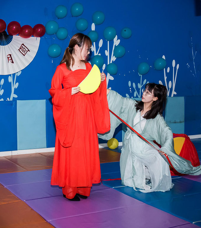 接下來是老師們帶來的舞臺(tái)劇<<月亮姑娘做衣裳>>!