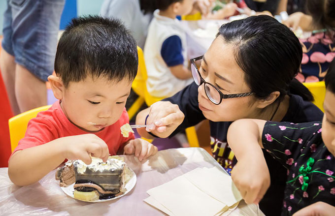 瞧,我們的月餅蛋糕登場(chǎng)了啊,看寶貝們吃的多開心。