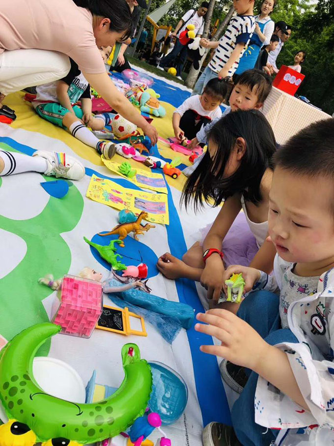 義賣的公益活動正在熱火朝天的舉行中 寶貝們的玩具也賣的不亦樂乎