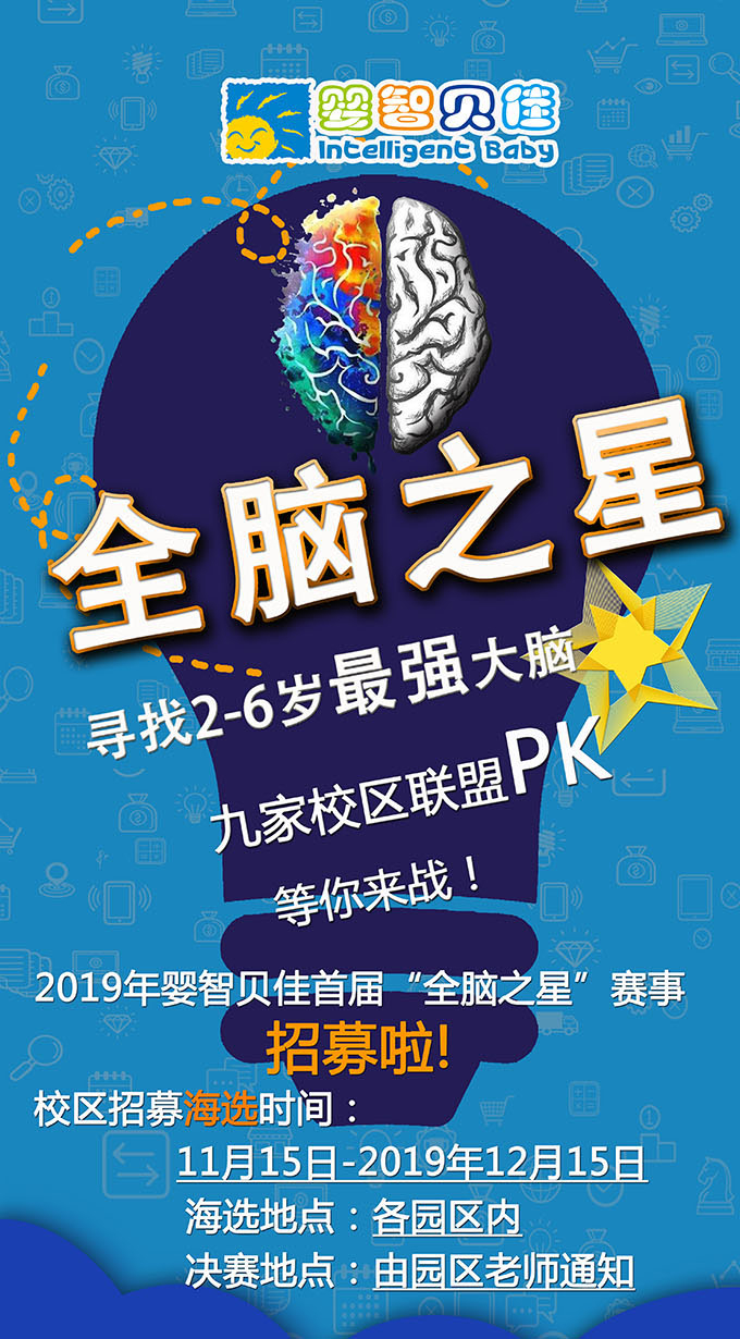 "全腦之星"·錦標(biāo)賽是由“平衡教育”的倡導(dǎo)者和踐行者:嬰智貝佳品牌發(fā)起,聯(lián)合上海九大校區(qū)聯(lián)盟PK,尋找2-6歲最強大腦。