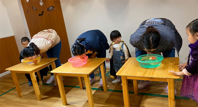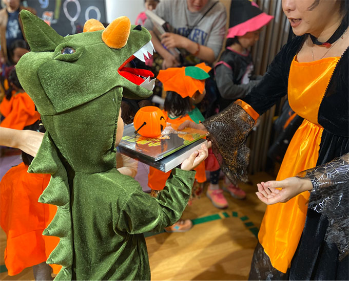 在狂歡正式開始之前有兩個(gè)挑戰(zhàn)小游戲——“拯救南瓜”和“精靈悄悄話”,為了贏得獎(jiǎng)品小朋友們也積極參與。