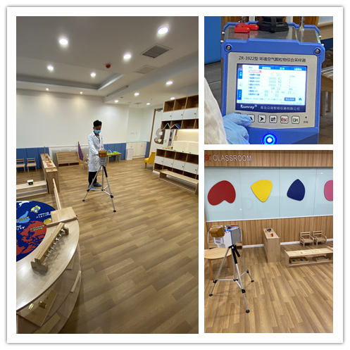 開(kāi)業(yè)前,為了家長(zhǎng)放心,園所邀請(qǐng)第三方專(zhuān)業(yè)檢測(cè)團(tuán)隊(duì)進(jìn)行空氣檢測(cè),確保環(huán)境的安全。