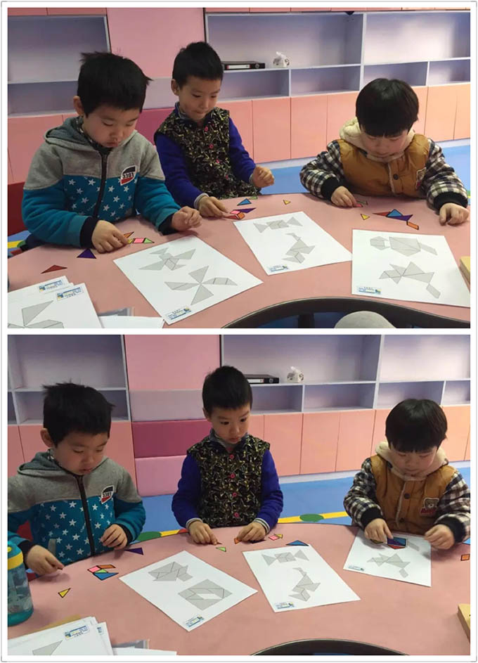 這是寶寶媽媽發(fā)過來的:正在上右腦班的2歲的毛毛,50秒就把七巧板拼好了。