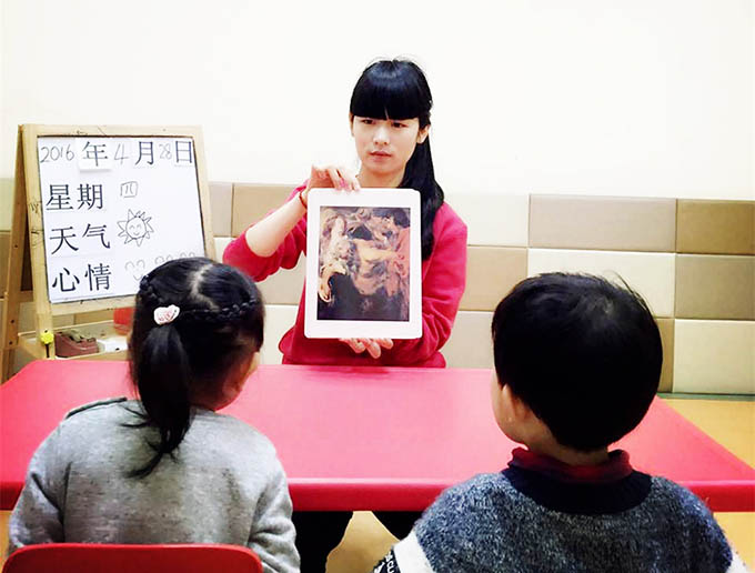 全腦開發(fā)還利用圖像卡片讓孩子們發(fā)揮自由的想象空間,將卡片串聯(lián)成一個個繪聲繪色的情景故事。在鼓勵孩子自由聯(lián)想的同時培養(yǎng)孩子們自信心,大膽表達各自想法。這是培養(yǎng)連貫的語言能力的有效途徑。